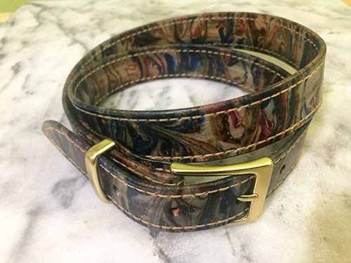 Alejandro Leather offers belts in sizes 3/4″ to 1 1/2″. All are double layer for beauty and comfort. Each is hand cut, trimmed, bonded, punched, dyed or marbled, stitched and finished.